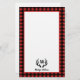 Personalised name and monogram letter stationary. The stationary has a bold rustic red and black lumberjack plaid pattern.