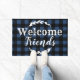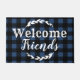 Rustic Buffalo Check Plaid Welcome Friends Blue Doormat