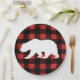 Rustic Buffalo Check Plaid & White Bear Silhouette Paper Plate