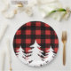 Rustic Buffalo Check Plaid & White Forest Trees Paper Plate