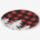 Rustic and bold red and black buffalo check plaid background paper plates. They also feature a white forest trees silhouette. These plates are great for baby showers!