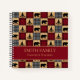 Custom family recipe cookbook with a patchwork of red and black buffalo check alternating with patches of a wood plank design. Bears and pine trees are mixed into the pattern. Personalise with your family name any text you choose. Perfect for your mountain home.