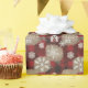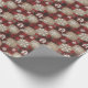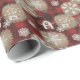 Premium wrapping paper with a cozy repeating pattern of red buffalo plaid, burlap snowflakes, white barns with wreaths, string lights, pine sprigs, and holly on a textured background—perfect for farmhouse holiday gifts.