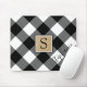 Black and white buffalo check plaid mouse pad with monogram on centre and a modern handwritten script name. Delete the sample name to leave that area blank if not desired. The text font style, size and colour can be changed for a custom lookby clicking on CUSTOMIZE FURTHER under the PERSONALIZE section or by contacting the designer via Zazzle Chat or makeitaboutyoustore@gmail.com if you'd like this design modified, on another product or would like coordinating items.