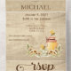 This invitation features a rustic design with bumble bees and honey against a wood background. The invitation is made of top quality cardstock and comes with a matching envelope. It is sure to make a lasting impression on your guests. It's perfect for the fall/autumn wedding or barn wedding.