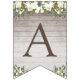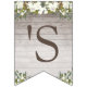 Rustic wood theme with brown and white floral design "It's a girl" baby shower party bunting flags.