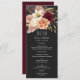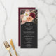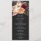 Elevate your wedding reception with this rustic floral burgundy and black wedding menu. Featuring a moody boho design adorned with red and peach roses, pampas grass, and elegant calligraphy, this menu sets a romantic tone for your dinner setting. The rich colour palette and floral accents make it ideal for autumn or evening weddings.