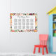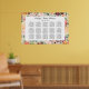 Stylish wedding seating chart poster design features a monogram of the bride and groom names and wedding date, custom template text for table numbers and guest names. Framed by a beige pattern of summer and fall watercolor flowers, including roses, dahlias, peony flowers, and greenery, in a gorgeous autumn palette of burgundy red, golden yellow, peach orange, blush pink, and shades of green.