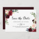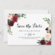 This rustic burgundy calligraphy horizontal wedding save the date is perfect for an autumn wedding. The design features burgundy, red, navy, blue and blush radiant and graceful hand-painted flowers, inspiring natural beauty.