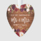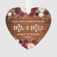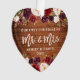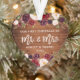 Rustic Wood, Modern Brush Script, Watercolor Burgundy Marsala Floral, Our First Christmas as Mr. and Mrs. Heart Wedding Ornament