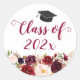Rustic Burgundy Floral Graduation Classic Round Sticker