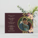This romantic burgundy wedding invitation features hand-drawn florals in soft blush, peach, and plum tones paired with elegant gold accents and a custom photo framed in a geometric diamond. The rich jewel-tone palette makes it perfect for fall weddings, vineyard venues, or romantic rustic celebrations. A beautiful way to showcase your love with warmth and artistic flair.
