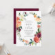 Our wedding invitation features a burgundy, orange and blush watercolor floral wreath. Perfect for fall and winter weddings.