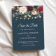 Rustic Burgundy Navy Blue & Red Flowers & Lights Save The Date