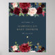 Rustic Burgundy & Navy Floral Baby Shower Welcome Poster