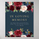 Rustic Burgundy Navy Floral In Loving Memory Sign