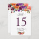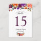 Rustic Burgundy Orange Floral Wedding Table Number Card.