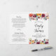 This elegant rustic style wedding ceremony sheet program design features beautiful fall watercolor flowers, including roses, dahlias, peony flowers, and greenery, in a gorgeous autumn palette of burgundy red, golden yellow, peach orange, blush pink, and shades of green. Perfect for a summer or fall event. Personalise the stylish dark grey text on both sides of the sheet with your custom ceremony, wedding party, and thank you message wording. Note: these programs arrive flat and require folding for a centre fold.