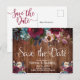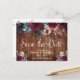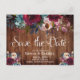 Rustic Burgundy Red Navy Floral Wood Save the Date Announcement Postcard
