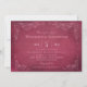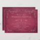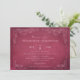 This formal wedding shower invitation card with a vintage wine label style design. Rustic hand-drawn sketches of grapevine leaves frame the important details. A simple flourished design with the event date appears on the reverse side. Rich dark burgundy red and rosy pink colour scheme.