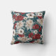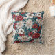 A rustic burgundy and cream rose floral teal background patterned throw pillow.