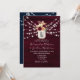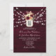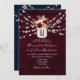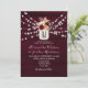 Elegant, modern, rustic wood burgundy wedding invitation with monogram, beautiful watercolor flowers in mason jar, string lights and trendy calligraphy script. Perfect choice for romantic fall weddings!