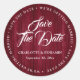 Rustic Burgundy Typography Wedding Save The Date Classic Round Sticker