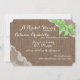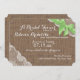 Romantic and rustic vintage lace and dark brown burlap with a pretty green bow bridal shower invitation. Customise with your favourite fonts, text and text shades. This pretty invitation is completely printed. There are no real ribbons, lace or burlap attached.