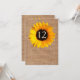 Rustic chic wedding reception table number card, done in a brown burlap look, with graphics of a big pretty yellow sunflower. Personalise the number for each table at your reception. Matching wedding products are available.