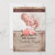Rustic wood, old burlap and shabby pink flowers newborn baby girl photo birth announcement