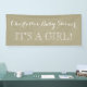 Custom name it's a girl baby shower sign with rustic country burlap pattern and vintage style handwritten lettering. A perfect personal touch for your rustic or woodland theme baby shower.