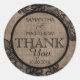 Black lace over grunge burlap background elegant modern thank you sticker label.