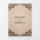 Amaze your guests with this elegant western theme wedding invite featuring beautiful horseshoes and black lace on a rustic burlap background with detachable RSVP card. Simply add your event details on this easy-to-use template and adorn this card with your favourite photo to make it a one-of-a-kind invitation.