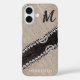 Rustic Burlap Lace Barn Wood Elegance Monogram Case-Mate iPhone Case
