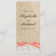 Rustic Burlap Lace Coral Ribbon Wedding Program Programme