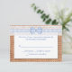 Rustic country chic wedding RSVP response cards, done in a burlap look, with a white text area. Graphics of a white lace band with a light blue and white gingham ribbon and bow stretch across the top. Personalise the blue text for your special day. Matching wedding products available.