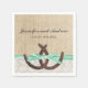 Personalised rustic country wedding paper napkins. Featuring a burlap background with white lace and a faux mint green ribbon with a pair of vintage horseshoes. Designs are printed illustrations/graphics - NOT ACTUAL RIBBON. Perfect for a western wedding or barn wedding.
