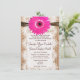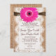 Rustic Burlap Lace Hot Pink Daisy Wedding Invites