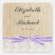 An vintage burlap sticker design. Featuring rustic burlap with white lace and a faux lavender ribbon. Designs are printed illustrations/graphics - NOT ACTUAL RIBBON. Perfect for a western wedding or country bridal shower. These sticker labels are great for personalising favour bags, favour tins, envelopes, and more!