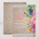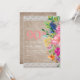Beautiful pink, blue, orange, and yellow watercolor floral and greenery botanical 90th birthday party invitation for women on a rustic burlap and white lace background and a cute cursive script font. The back of this card is a matching wood background. Contact us for help with customisation or to request matching products.