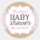 Rustic Burlap Lace Pink Girl Baby Shower Classic Round Sticker
