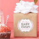 Rustic burlap with white lace and pink accents modern girl baby shower gift label.