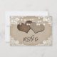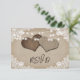 Romantic rustic country wedding RSVP cards inspired by burlap and lace. Easily personalise these vintage rustic country wedding response cards featuring burlap hearts on a distressed burlap background adorned with string lights and white floral lace.