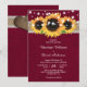This burgundy floral wedding invitation featuring sunflowers against a burlap and lace background is perfect for inviting your guests to your burgundy rustic wedding party inspired by sunflower flowers. Easy to personalise template.