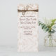This rustic wedding invitation program has a burlap print with an overlay of lace print and a twine bow at the top.The burlap, lace, and twine are just printed designs. It is not actual burlap fabric or actual lace or twine. Just add your own wedding program wording, or you could use this for a wedding menu or any other item need for your wedding.