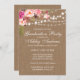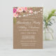 Rustic Burlap and String Lights Graduation Party Invitation - Watercolor Pink Floral
