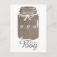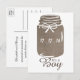 Rustic Burlap Mason Jar Baby Boy Announcement Postcard
