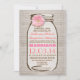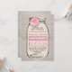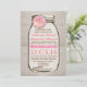 Pretty, rustic country wedding invitation with a mason jar illustration and pink gerbera accent . The burlap background is a printed design on the paper - not actual burlap fabric. Please contact me if you need help with customisation or have a custom colour request.