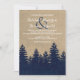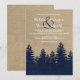 This rustic winter wedding invitation features a burlap look background with a navy blue burlap pine tree forest. Perfect for your rustic or vintage themed winter wedding.