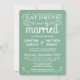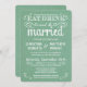 Eat, Drink, and be Married -- Vintage style rustic country wedding invitations -- Add the bride and groom names and wedding info in this easy to use template. Swirly, curly scrolls and old-fashion typography in radiant white on sage mint green burlap background. Elegant but fun and whimsical, retro chalkboard style calligraphy can be modified for your formal or semi-formal wedding theme. Casual modern style is perfect for trendy contemporary weddings with a fun touch of sophisticated charm for traditional couples. Please contact us for help with customisation if you need additional room for your wedding details. NOTE: Shown on standard A7 size invitation cards. Other sizes and styles available.